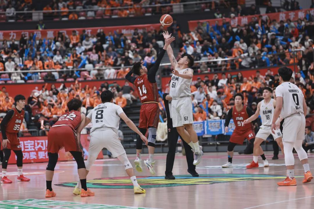 易边再战,双方经历短暂得分荒。台州队率先找到节奏,队员金子淏、梁飞祥连续冲击内线得手,实现比分反超。台州队手握5分优势进入末节决战。